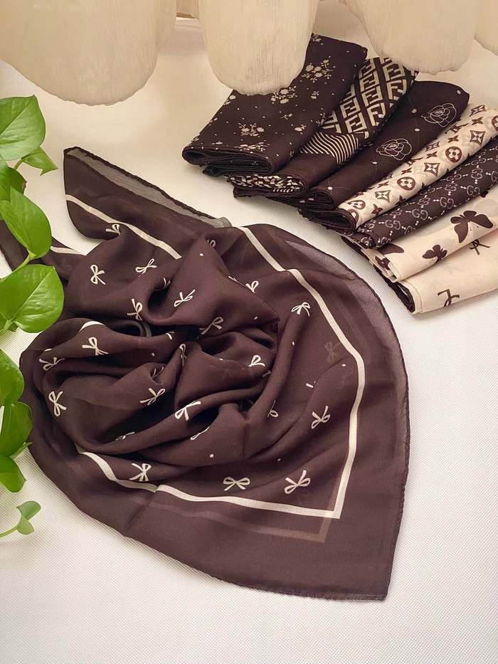 مینی اسکارف چاپی قهوهای