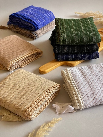 - شال نخی پلیسه شاین : اکلیلی لبه عدسی منگوله دار